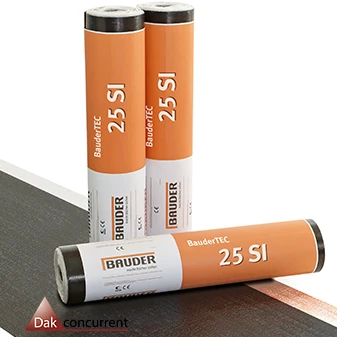 Baudertec 25 SI is een semi zelfklevende dampdrukverdelende onderlaag voor toepassing als 1e laag op Pir isolatie. De onderlaag is gemodificeerd met elastomeer kunststof (SBS). De firma Bauder uit Duitsland is producent van deze 2,5 mm dikke zelfklevende onderlaag. Bauder is 1 van de grootste producenten van dakmaterialen in Europa. Via Bauder Nederland wordt de Bauder dakbedekking en isolatie in ons land verdeeld. De onderlaag voor brandrollen heeft rolafmeting 7 x 1 meter. Rolgewicht ca. 25 kg, op een europallet zitten 24 rol. De dakbedekking is aan de onderzijde voorzien van zelfklevende thermstrepen met releasefolie en aan de bovenzijde afgewerkt met een wegbrandfolie. Meer info over de Baudertec 25 SI? Bekijk dan het tabblad "Bijlagen".